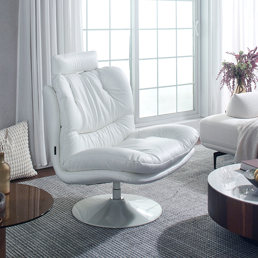 P017-White Leather Swivel Chair